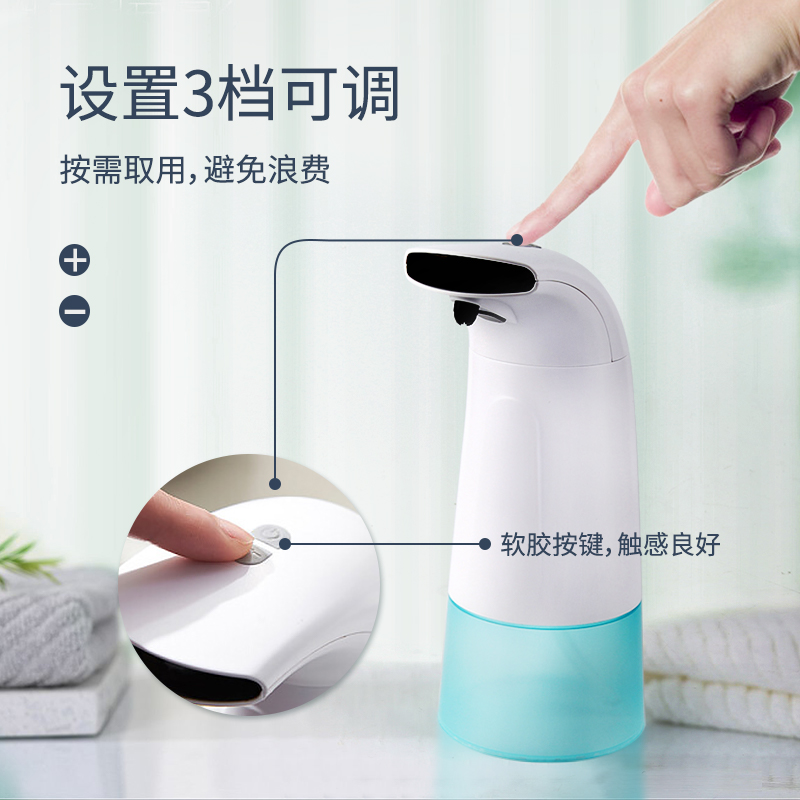 小泡泡感應(yīng)泡沫皂液器33605型號(hào):G33604防水等級(jí):IPX4主題:簡(jiǎn)約時(shí)尚小泡泡 | 不止是泡沫器,更是浴室藝術(shù)功能介紹:第四代皂液器告別手動(dòng)給皂,洗手進(jìn)入自動(dòng)泡沫新時(shí)代免接觸使用,讓每一次洗手更潔凈,呵護(hù)全家健康280ml皂液可替換設(shè)計(jì),適用大部分給皂液空氣注入技術(shù),微米級(jí)豐盈泡沫氣泡比12:1靈動(dòng)(Liteon)雙感應(yīng)技術(shù),超低功耗,USB可充電設(shè)計(jì),6個(gè)月持久續(xù)航精密微型電機(jī),能耗更低