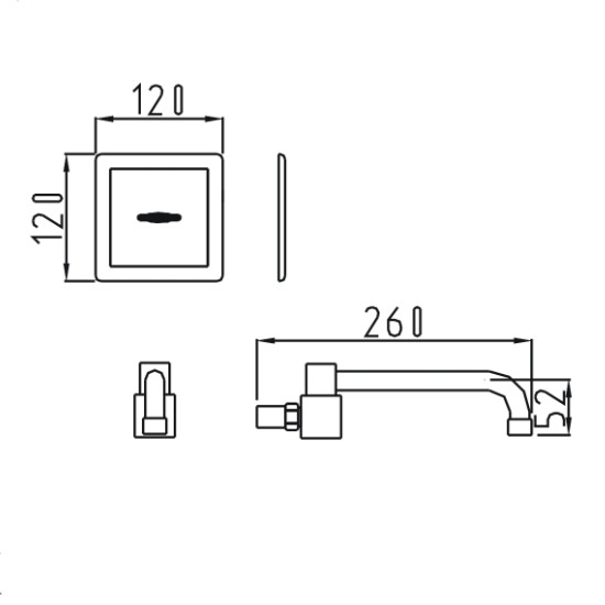 : 面板:120x120mm, 龍頭:260x52mm -